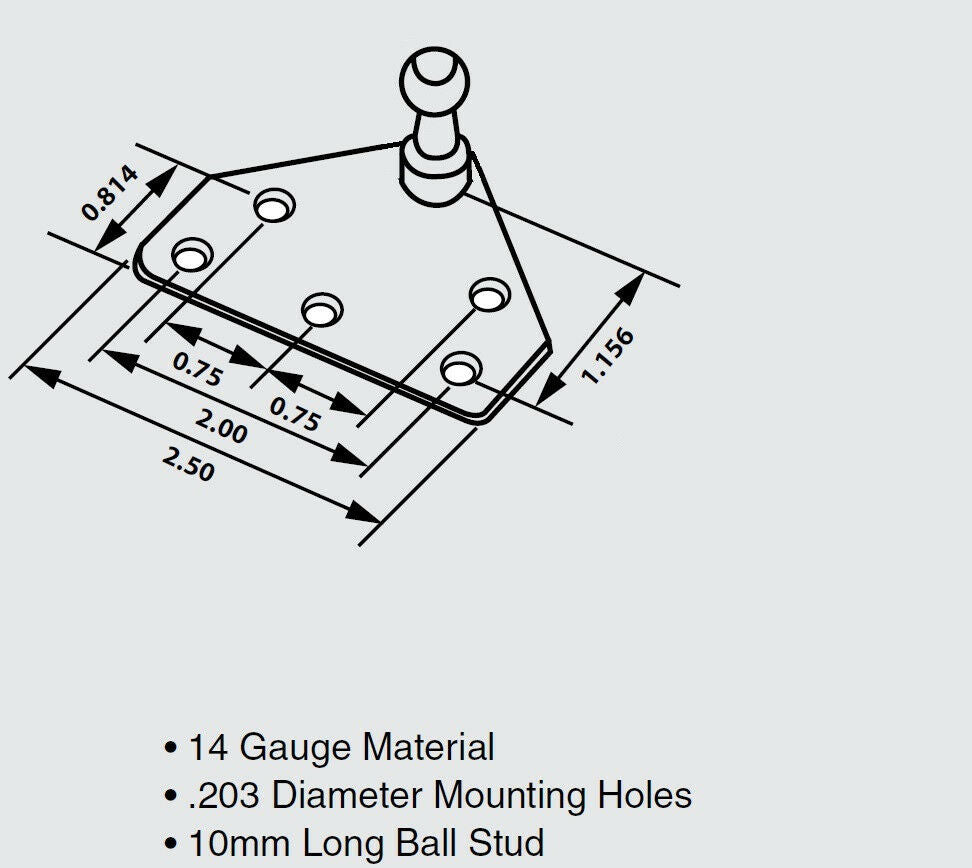 The bracket is 2-1/2" long and 1-3/4" in height with the ball stud. The ball stud itself is about 5/8" Tall.