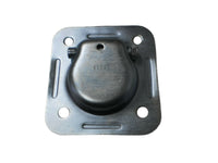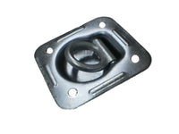 Each recessed ring fits standard 4-bolt cutouts with square holes. Matching backing plates reinforce the mounting area under the trailer floor.